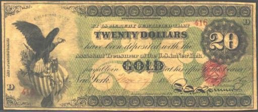 1862 Legal Tender known as a “greenback”. Most original greenback notes were very ornate. Legal Tender notes were payable of all debts but backed by nothing but a promise and known as “fiat”. The modern Federal Reserve notes in our wallets are fiat money.