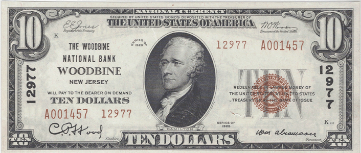 A 1929 chartered bank note in a local zip code. Known as “Obsolete Notes” they are out of circulation and collector items now. The chartered number 12977 is all over the small sized note. Many of these chartered banks did not last long and either went under completely or transformed to a different name and management style. The centered vignette is of Alexander Hamilton.