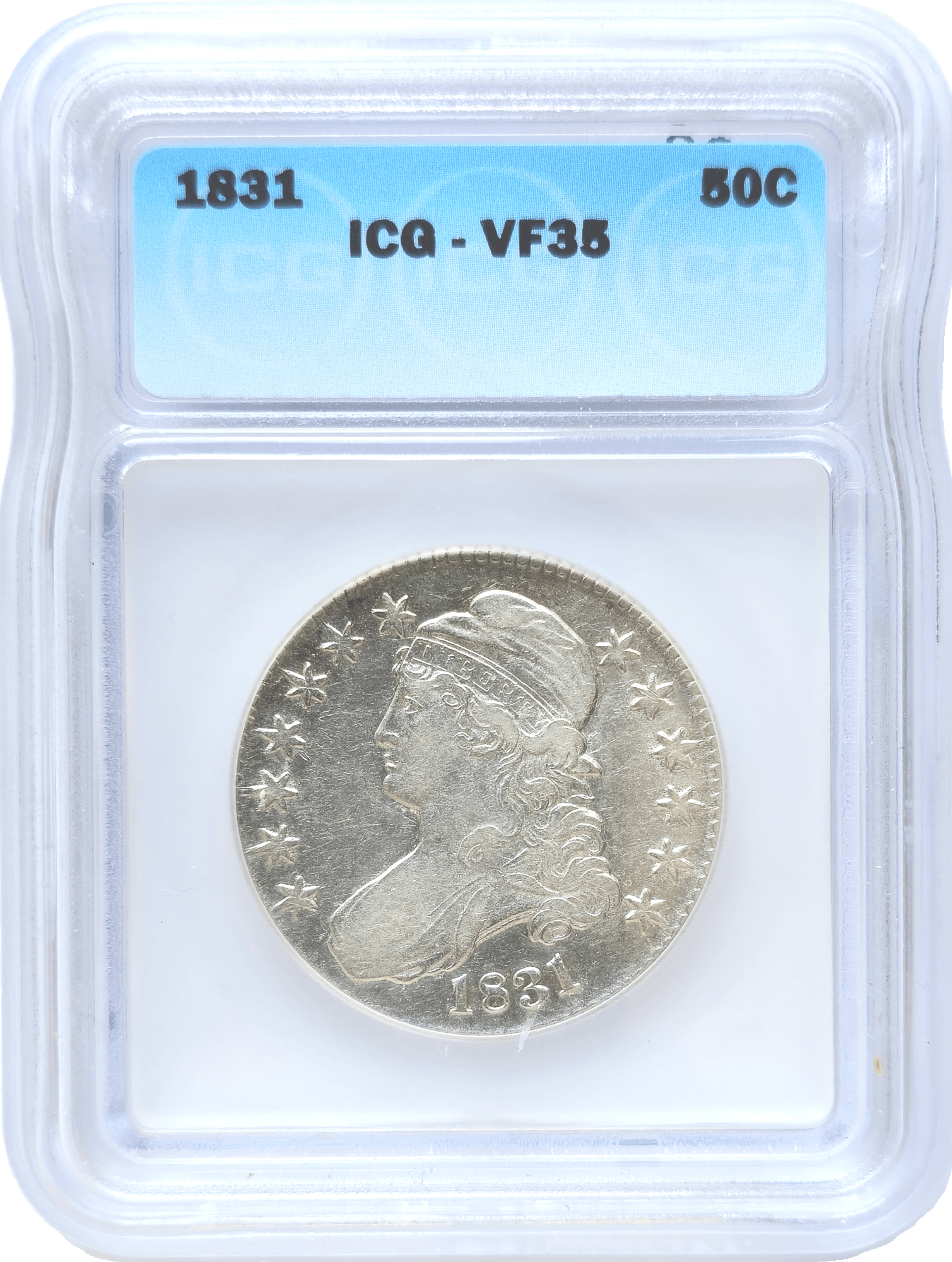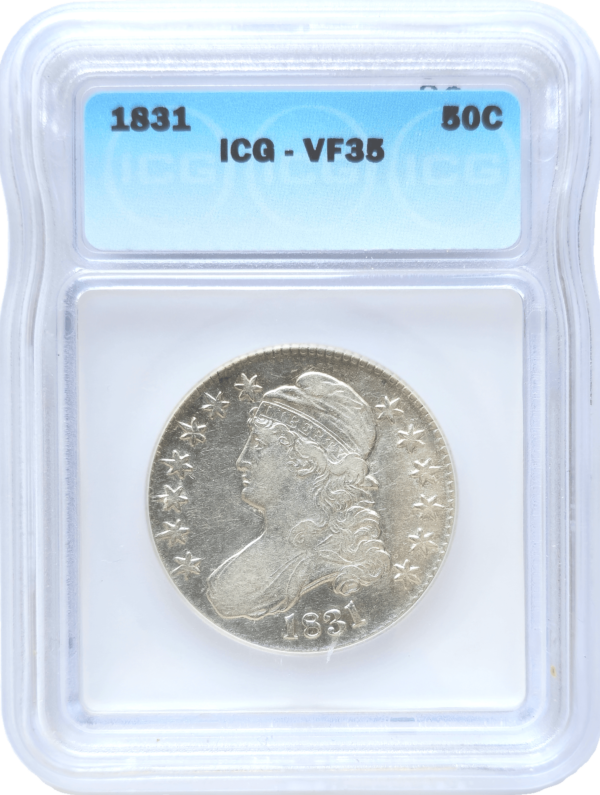 The 1831 capped bust half dollar is a remarkable piece of numismatic history. Graded by ICG as VF35, this coin is a testament to fine craftsmanship and design.