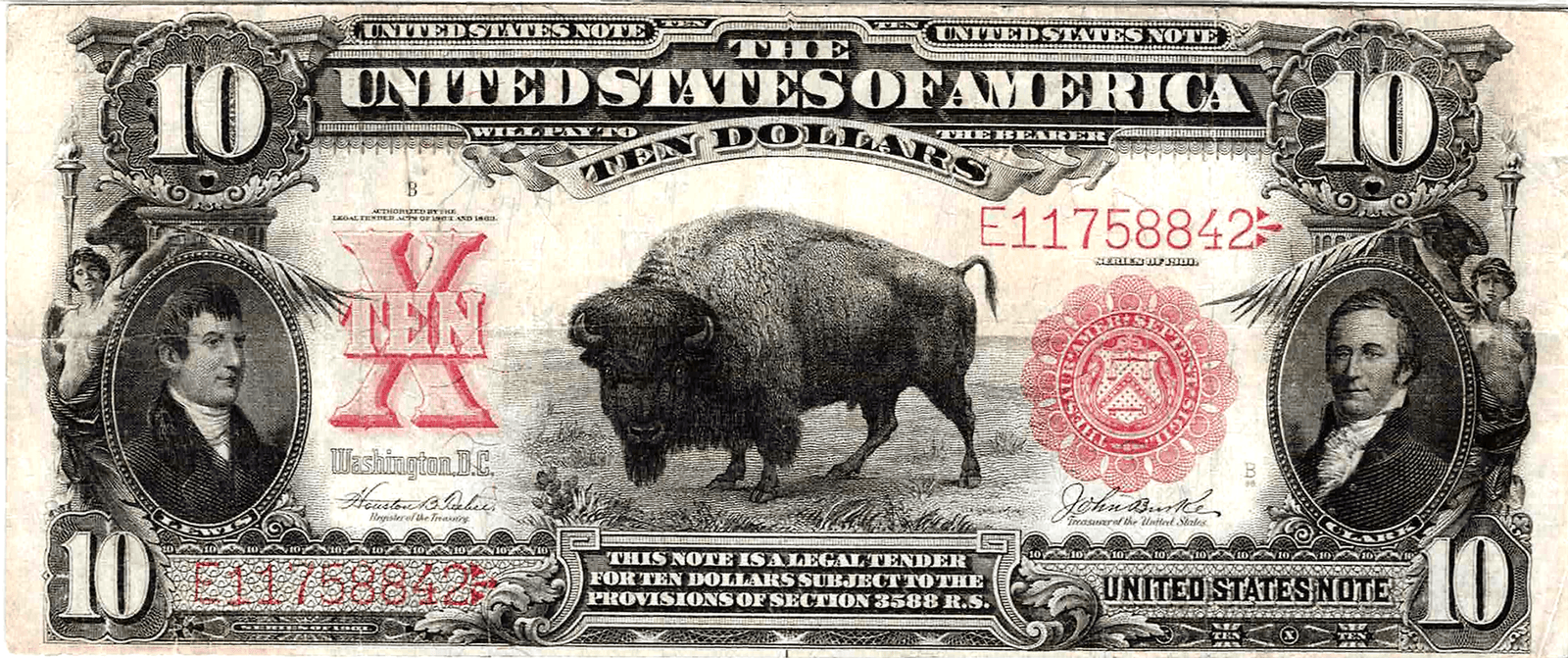 Step back in time with the coveted 1901 United States $10 Legal Tender Buffalo Note