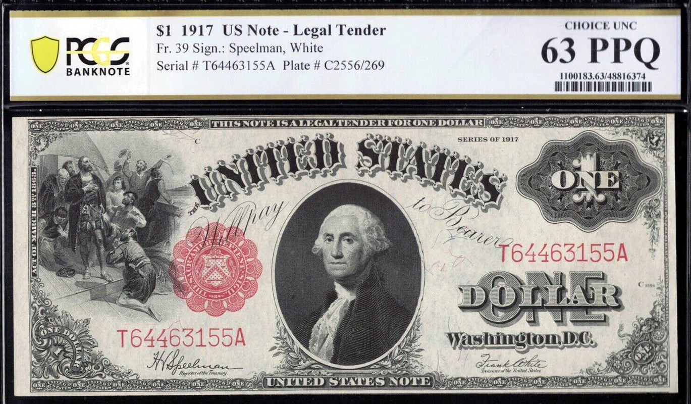 This particular note has been certified by PCGS as a 63 PPQ (Premium Paper Quality), indicating its excellent condition with original paper quality. It is designated Fr.#39, categorized by Robert Friedberg in his 1953 book “Paper Money of the United States”. Now in its eighth edition and available here.
