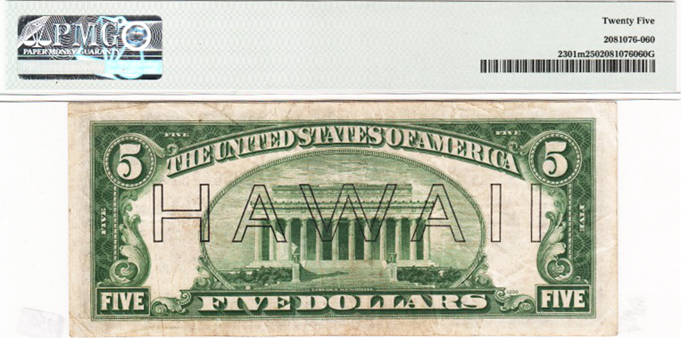 1934 Series $5 Hawaii WWII Emergency Federal Reserve Note Mule