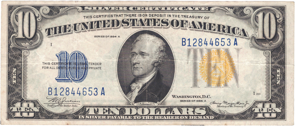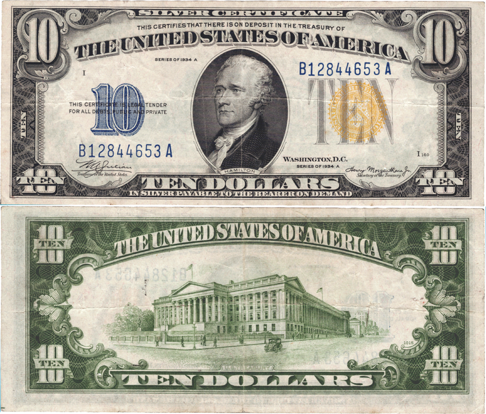 Step into the past with the remarkable 1935A series ten dollar North Africa Emergency Silver Certificate Fr#2309. It features a striking yellow seal. This unique piece offers a glimpse into challenging times, showcasing its good condition.