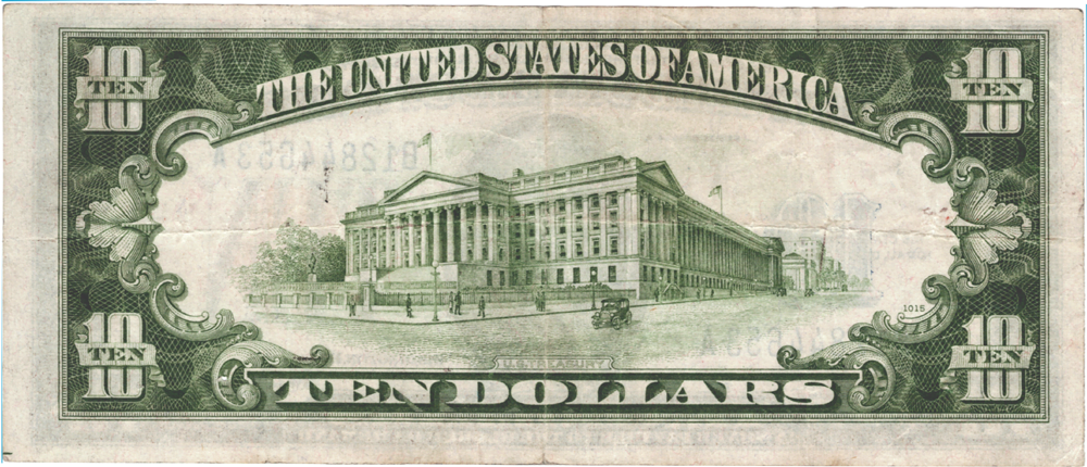 Small signs of circulation and one ink burn pinhole at Morgenthau’s signature. Some old folds are apparent. This note is a true testament to its era during war years.