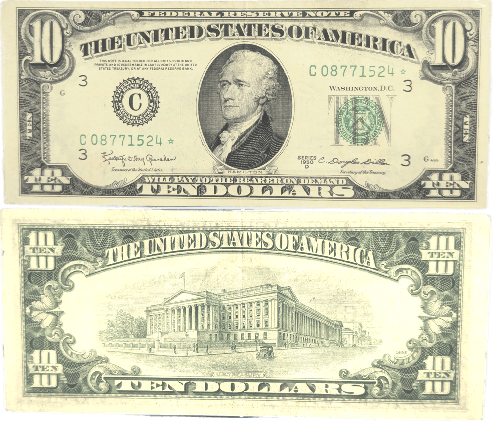 The 1950 D Series Federal Reserve $10 Star Note is a remarkable piece of currency history. This bill, known as a star note, is notable for its distinct numbering system, where the star symbol replaces a single digit in the serial number, distinguishing it from regular notes.