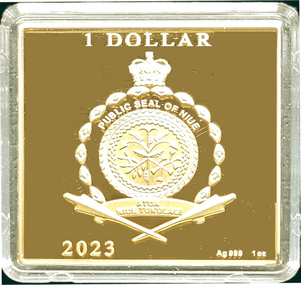 This carefully crafted silver bar boasts exceptional details, making it stand apart in the realm of precious metals. With one full ounce of .999 silver content, the bar ensures enduring value, while the 24-karat gold gilding adds an undeniable touch of luxury. Issued by the island of Niue, it features a $1 face value, reinforcing its legitimacy and collectible appeal.