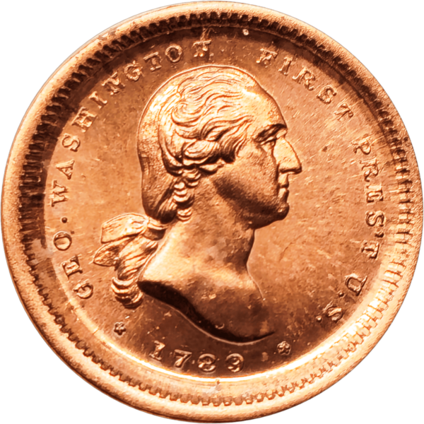 The coin boasts a beautiful copper color, as if it was made yesterday but is around 50 years old. Struck with an original obverse die, the intricate designs tell a story of elegance and craftsmanship. Many medals glorifying our first president are out there to collect. Which one this die came from is still a mystery to me. A Paquet would probably have a P on the truncation of the bust or Baker a B. So which die sinker made this die?